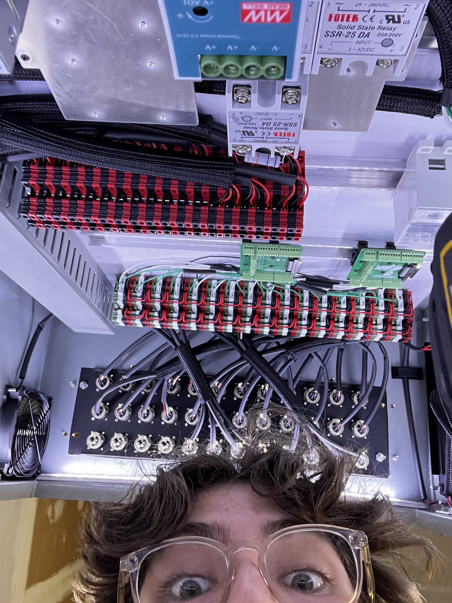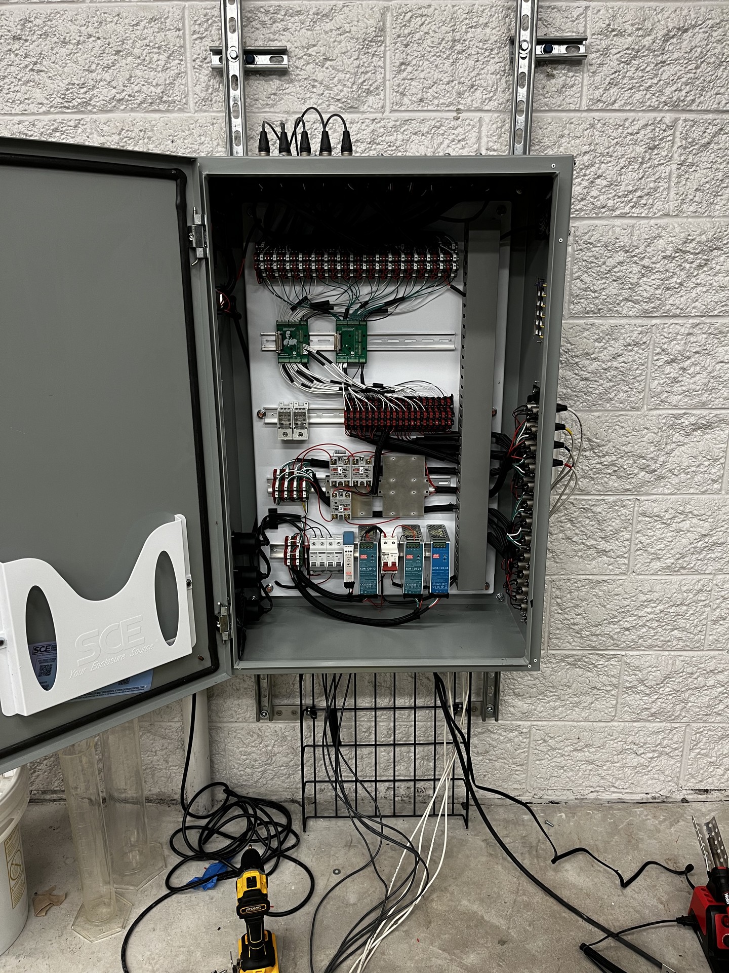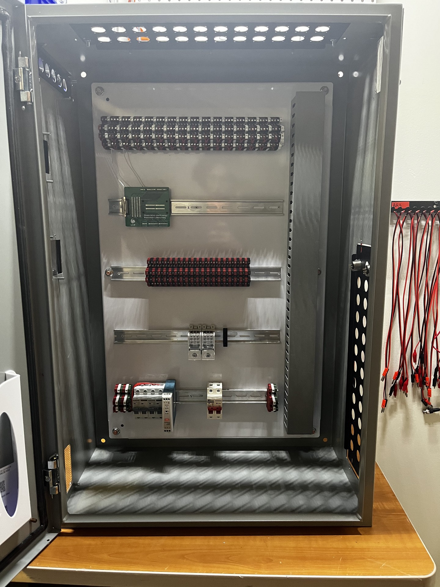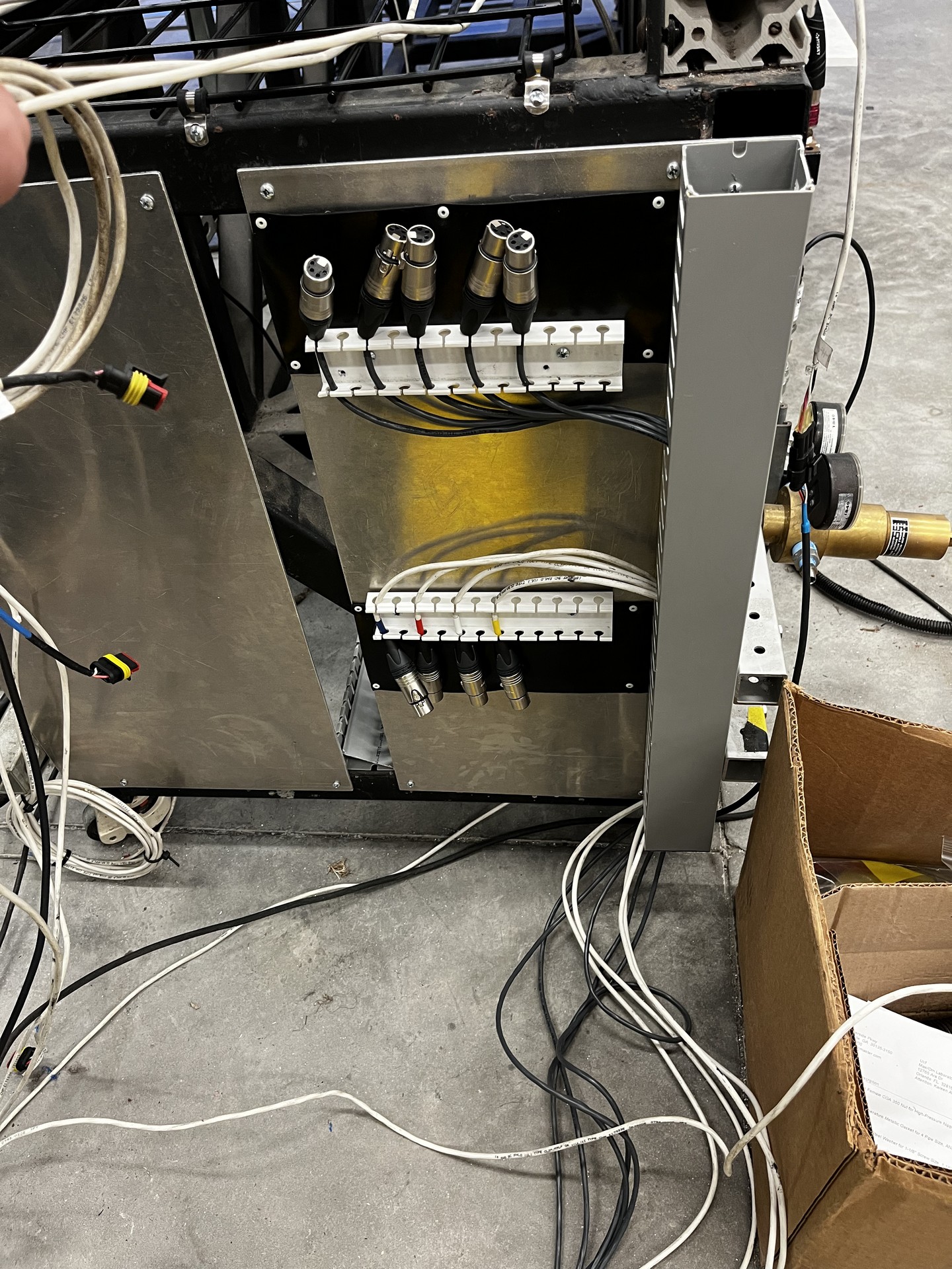 Got all of the power supplies in (5, 12, 24, 48 VDC for future capabilities), wired to independent breakers for safety cutoffs. Independent XLR panels for digital and analog signals, plus dedicated thermocouple ports (Type K & E). Got the first power on, no issues. LEDs provide nice, bright lighting to ease troubleshooting.