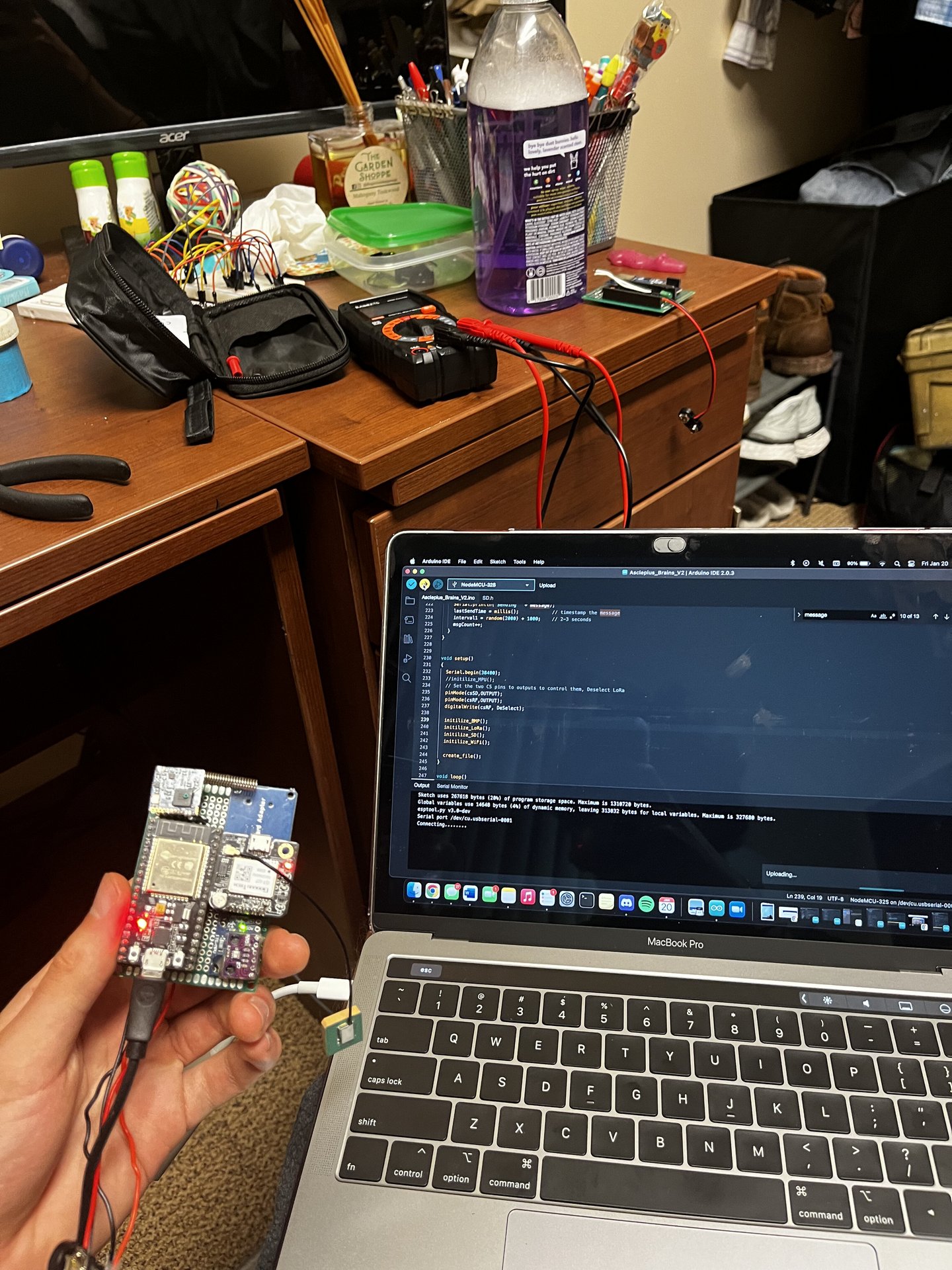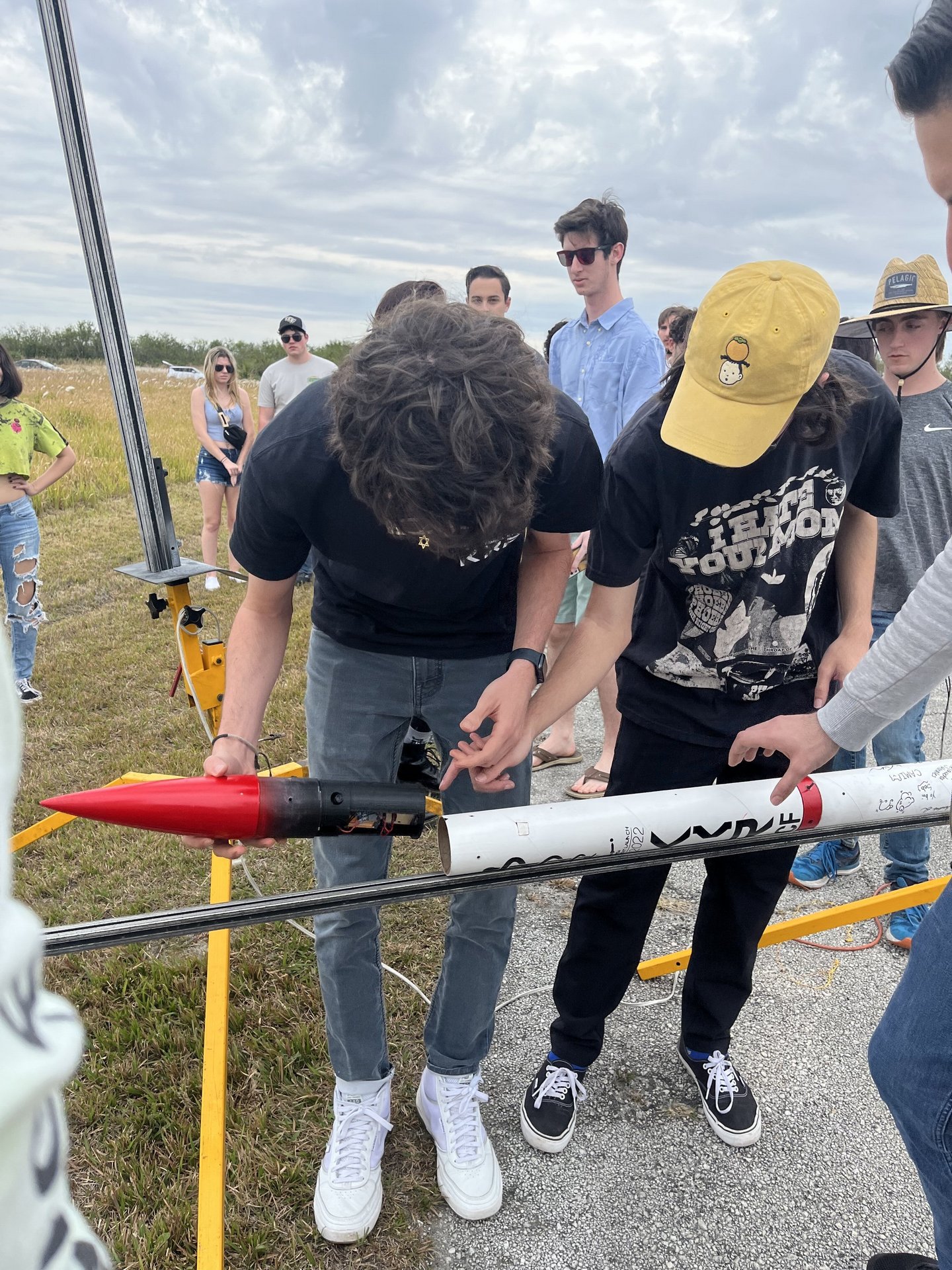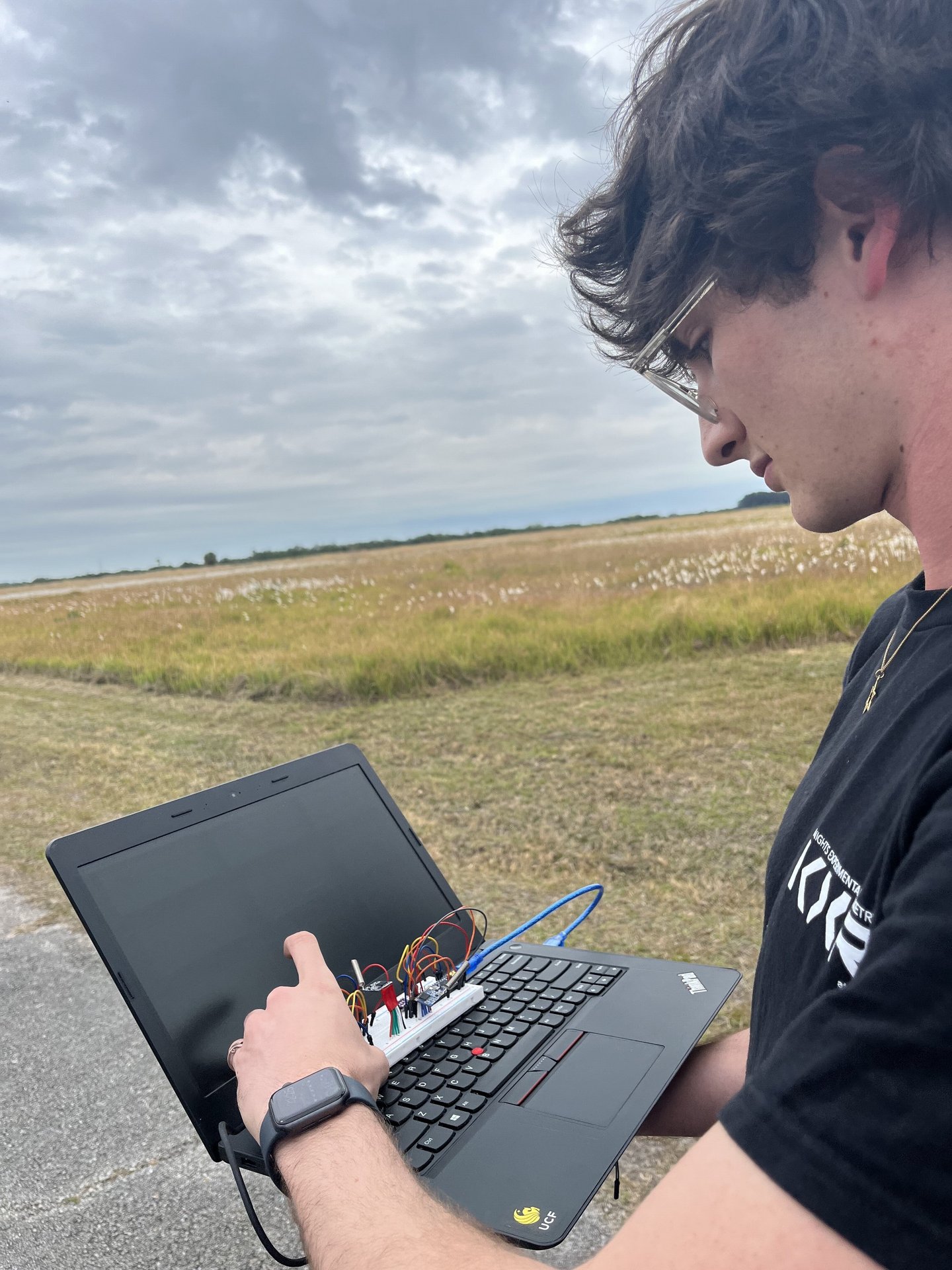 Launching the Sub-scale rocket. Out in the launch field, establishing a connection with the onboard avionics.