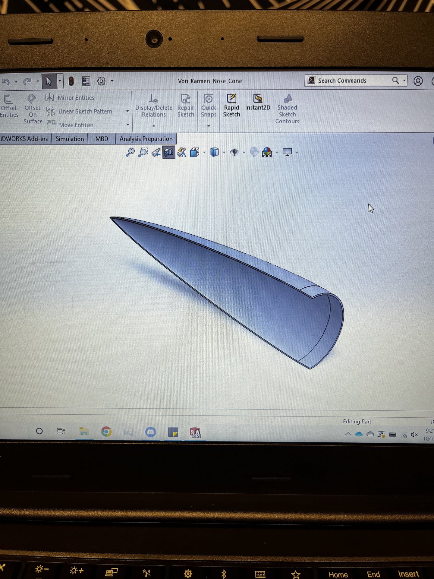 Designed a custom ogive nosecone to be made out of fiberglass, machining the nose tip out of aluminium.